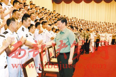 中共中央總書記、國家主席、中央軍委主席習(xí)近平24日上午視察海軍機(jī)關(guān),代表黨中央和中央軍委,對(duì)海軍第十二次黨代表大會(huì)的召開表示熱烈的祝賀,向海軍全體指戰(zhàn)員致以誠摯的問候。他強(qiáng)調(diào),海軍是戰(zhàn)略性軍種,在國家安全和發(fā)展全局中具有十分重要的地位。要以黨在新形勢(shì)下的強(qiáng)軍目標(biāo)為引領(lǐng),貫徹新形勢(shì)下軍事戰(zhàn)略方針,堅(jiān)持政治建軍、改革強(qiáng)軍、依法治軍,瞄準(zhǔn)世界一流,銳意開拓進(jìn)取,加快轉(zhuǎn)型建設(shè),努力建設(shè)一支強(qiáng)大的現(xiàn)代化海軍,為實(shí)現(xiàn)中國夢(mèng)強(qiáng)軍夢(mèng)提供堅(jiān)強(qiáng)力量支撐。