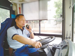 “以前報(bào)站經(jīng)常是扯著嗓子喊,每天嗓子都要‘冒煙’?,F(xiàn)在有公交車(chē)自動(dòng)播報(bào)系統(tǒng),我就拿著話筒喊。”劉師傅說(shuō),他現(xiàn)在每天開(kāi)車(chē)跑3趟,每趟至少要喝一個(gè)8磅水壺裝的水,至少上一次廁所。