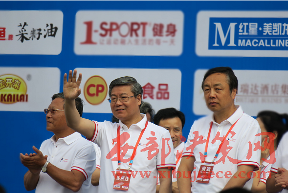 蘭州市委副書記、蘭州市政府市長欒克軍向運(yùn)動員揮手致意(杜杰 攝)