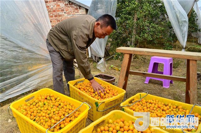 近年來,廣西融安縣因地制宜,把金桔列為扶貧增收的重要產(chǎn)業(yè),通過農(nóng)業(yè)獎補政策、專業(yè)種植技術培訓等鼓勵貧困戶種植金桔,助力脫貧。融安縣大將鎮(zhèn)雅仕村的貧困戶漆昭賢,曾常年在外地打工,生活條件艱苦。2014年在縣里政策引導下,他返鄉(xiāng)種植金桔,并獲得專項補貼和無息貸款,連續(xù)三年參加縣農(nóng)業(yè)局等單位舉辦的種植技術培訓班。如今,漆昭賢不僅在自己的地里種金桔,還承包了周圍農(nóng)戶的土地,種植面積十余畝,今年預計產(chǎn)量可達16000斤,純收入有望達到4萬元。記者李絢麗攝