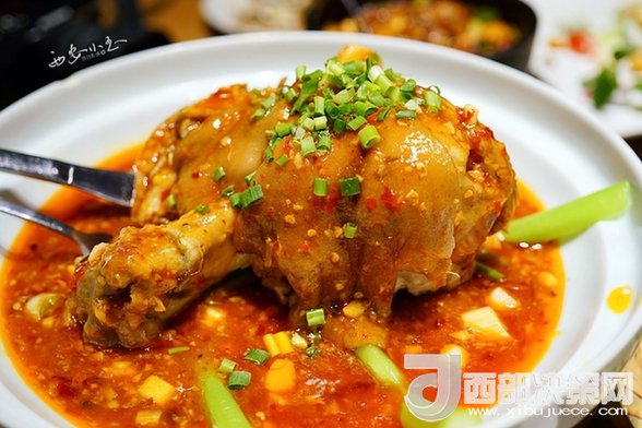 肘子燉得酥爛,辣辣的,吃起來一點兒也不膩了。