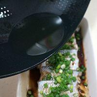 9. 炒鍋中燒熱植物油,將油澆在蔥花上,就可上桌食用啦,魚泡兩分鐘,更吸味兒。