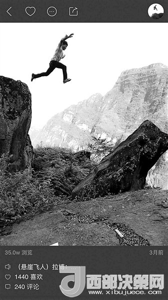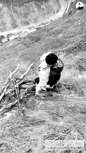 現(xiàn)在,村里24歲的彝族小伙兒拉博已經(jīng)成為首批網(wǎng)紅之一。2016年11月19日,垂直距離約800米、總共約1000級(jí)臺(tái)階的懸崖村鋼梯工程竣工。拉博就是鋼梯施工隊(duì)的一員,在山崖最陡峭的一段,他親手打下了固定的鋼釘。鋼梯完工后,拉博特意去“跑”了一遍,從山頂?shù)缴侥_僅耗時(shí)18分鐘,而這段路普通人可能需要一個(gè)半小時(shí)。從小放羊的拉博習(xí)慣了在山間奔跑跳躍,爬天梯、過(guò)吊橋、放牛羊這些生活日常,在5個(gè)月的時(shí)間里為他帶來(lái)了12.6萬(wàn)的粉絲。