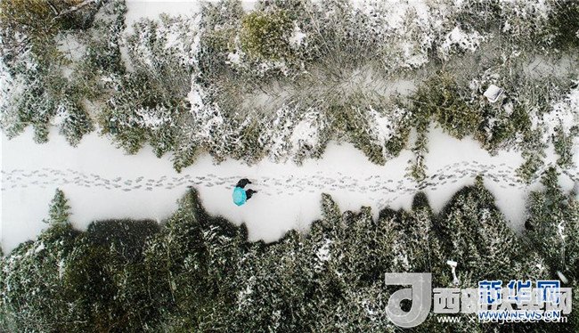 1月4日,合肥市翡翠湖公園內(nèi),兩名游客行走在雪中。當(dāng)日,安徽省合肥市迎來2018年首場(chǎng)降雪。(記者 郭晨 攝)