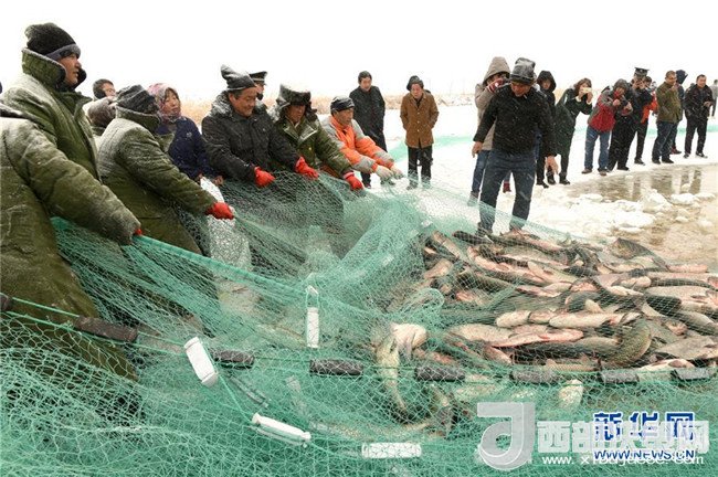 寒冬時(shí)節(jié),內(nèi)蒙古巴彥淖爾市杭錦后旗鴻雁湖進(jìn)入冬季捕魚季,湖面上呈現(xiàn)出一派“人歡魚躍”的豐收景象。