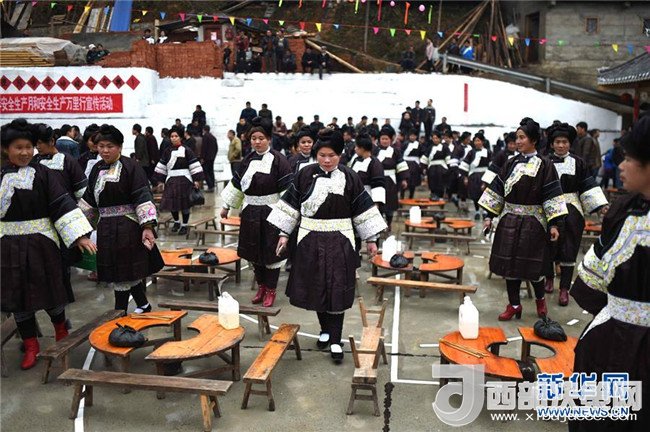 當(dāng)日是貴州省榕江縣仁里鄉(xiāng)仁吉侗寨大年初二,附近5個村寨的侗族、苗族、水族等少數(shù)民族群眾前來“吃相思”,共同歡慶侗年。“吃相思”是侗族地區(qū)村與村、寨與寨之間舉行的一種民間交往活動。記者戴天放攝
