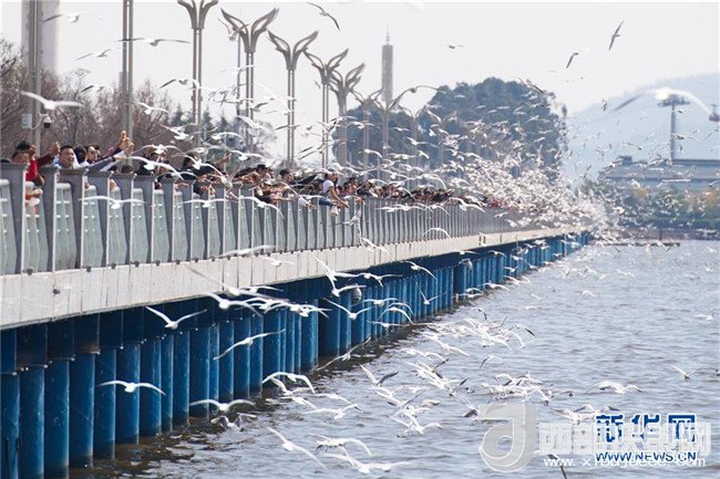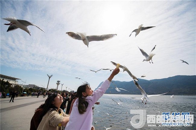當日,云南省昆明市陽光明媚,眾多市民和游客來滇池海埂觀景大道觀賞、投喂紅嘴鷗。每年秋冬季大批紅嘴鷗飛臨昆明越冬。人鷗同樂成為昆明的一道風景線。記者胡超攝