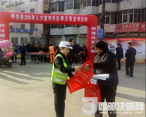西部決策網(wǎng)-西部大開發(fā)訊(帥華鋒 通訊員 馬存福 施廣永)3月1日上午,甘肅兩當縣公安局交警大隊結(jié)合自身實際,積極參與了縣法治辦組織的人大宣傳月法律法規(guī)宣傳活動。