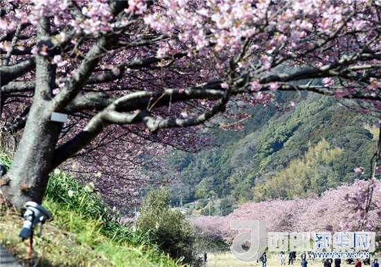 在太平洋沿岸的日本伊豆半島,河津櫻競(jìng)相綻放,吸引了眾多游客。記者馬平攝