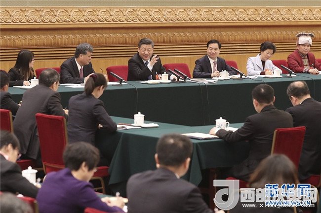 3月7日,中共中央總書(shū)記、國(guó)家主席、中央軍委主席習(xí)近平參加十三屆全國(guó)人大一次會(huì)議廣東代表團(tuán)的審議。 新華社發(fā)(盛佳鵬 攝)