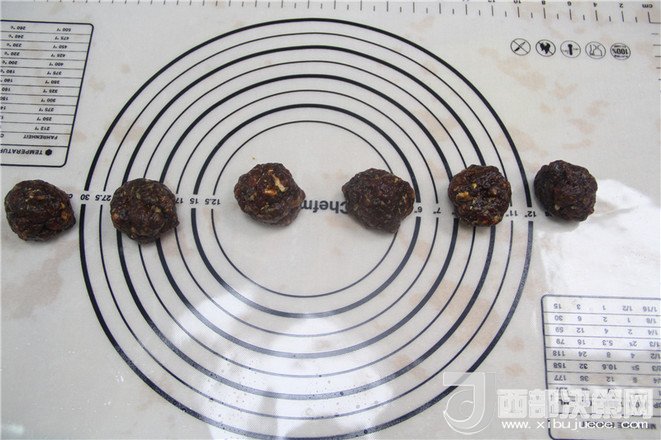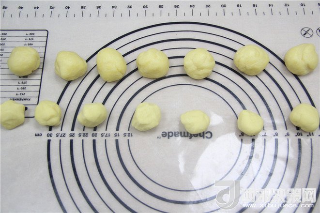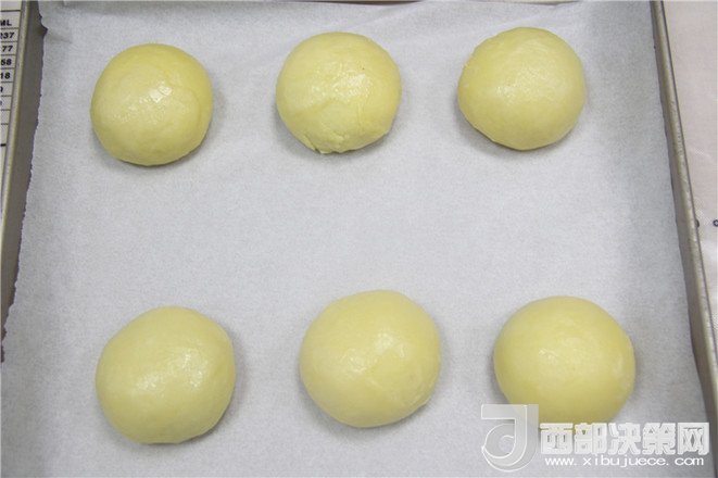 11.把油皮分割成6個25克,油心分成6個20克,分別揉成團。