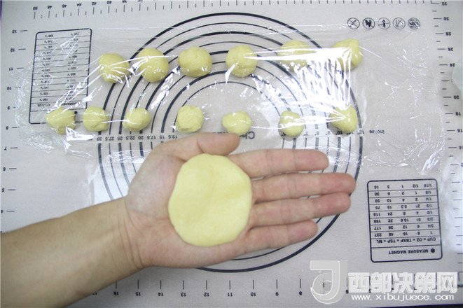 12.把油皮球用掌心均勻的向四周搟開成皮。