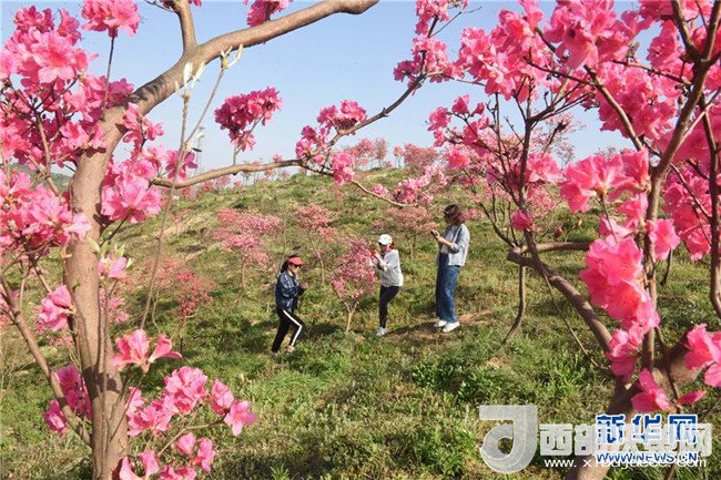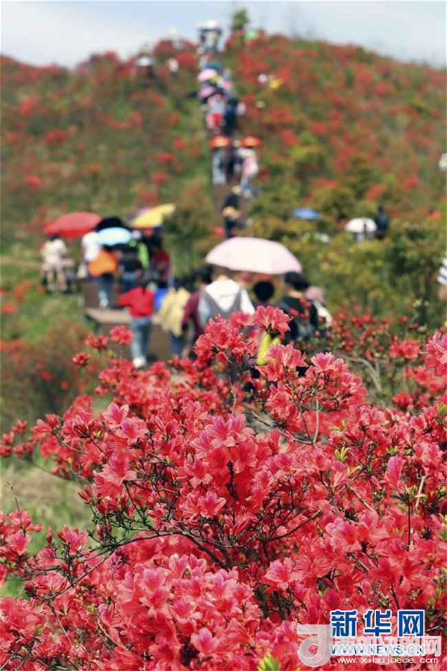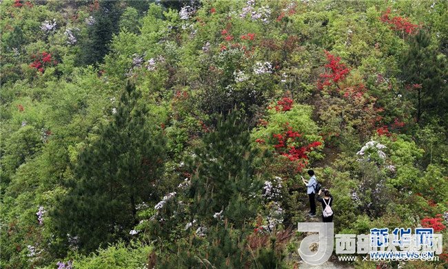 4月11日,游客在重慶市黔江國家森林公園杜鵑林里賞花游玩。 新華社發(fā)(楊敏 攝)