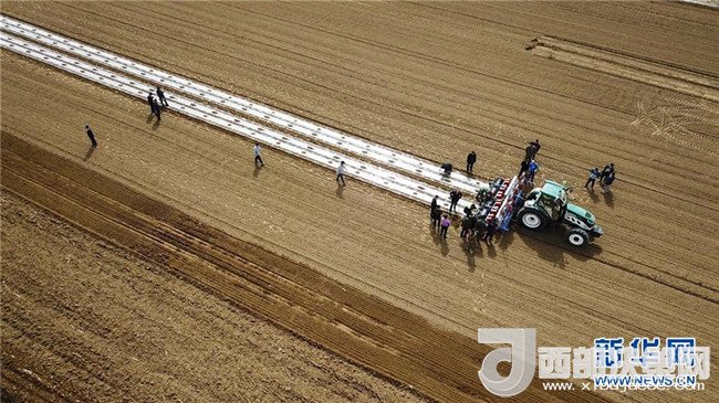 在新疆庫車縣牙哈鎮(zhèn)的一處棉田,“智能拖拉機(jī)”在進(jìn)行播種作業(yè)(3月23日無人機(jī)拍攝)。國家統(tǒng)計(jì)局4月17日發(fā)布數(shù)據(jù),初步核算,一季度國內(nèi)生產(chǎn)總值198783億元,按可比價(jià)格計(jì)算,同比增長6.8%。 新華社記者 胡虎虎 攝