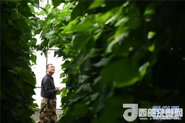 4月18日,村民孔景云在甘肅省酒泉市肅州區(qū)總寨戈壁農(nóng)業(yè)產(chǎn)業(yè)園的日光溫室內查看蔬菜生長情況。
