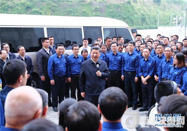 4月26日下午,中共中央總書記、國(guó)家主席、中央軍委主席習(xí)近平在武漢主持召開深入推動(dòng)長(zhǎng)江經(jīng)濟(jì)帶發(fā)展座談會(huì)并發(fā)表重要講話。這是座談會(huì)前,習(xí)近平于24日中午到興發(fā)集團(tuán)宜昌新材料產(chǎn)業(yè)園,察看化工企業(yè)搬遷、改造以及碼頭復(fù)綠情況。新華社記者 鞠鵬 攝