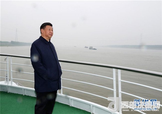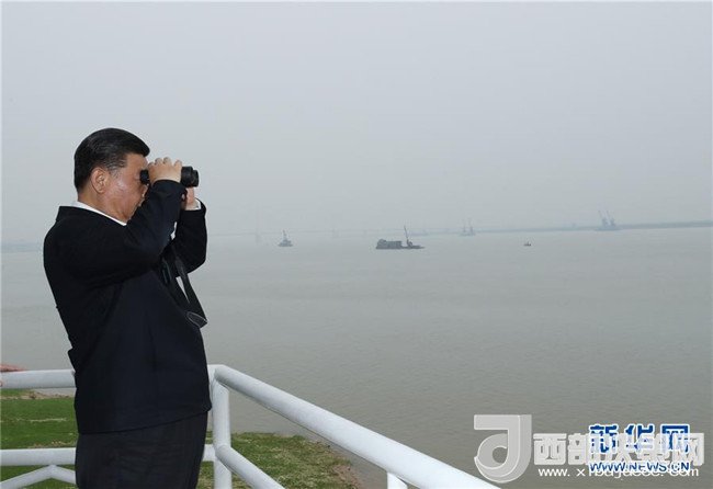 4月26日下午,中共中央總書記、國(guó)家主席、中央軍委主席習(xí)近平在武漢主持召開深入推動(dòng)長(zhǎng)江經(jīng)濟(jì)帶發(fā)展座談會(huì)并發(fā)表重要講話。這是座談會(huì)前,習(xí)近平于25日上午乘船沿江察看兩岸生態(tài)環(huán)境和發(fā)展建設(shè)情況。新華社記者 謝環(huán)馳 攝