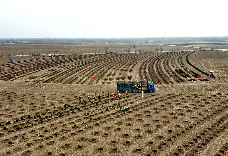 這是河北雄安新區(qū)“千年秀林”工程施工現(xiàn)場(3月21日無人機拍攝)。新華社記者 楊世堯 攝