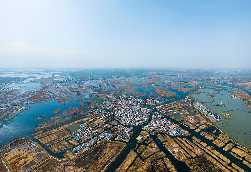 這是白洋淀中的村莊(3月29日無人機拍攝)。新華社記者 沈伯韓 攝