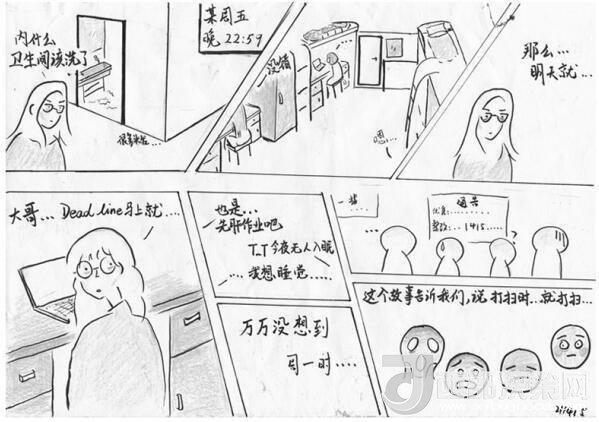 李雍告訴記者,家居與工業(yè)設(shè)計學(xué)院的學(xué)生都有一定美術(shù)功底,畫檢討剛好能讓學(xué)生在反省的同時鍛煉自己的專業(yè)技能,加上漫畫的表現(xiàn)形式輕松活潑,更符合“95后”的表達(dá)風(fēng)格。“學(xué)生們的漫畫體檢討融合了他們的創(chuàng)作情感,文字無法完整表達(dá)的心理活動,都可以通過這種圖文并茂的形式生動地呈現(xiàn)出來,而他們會把這種情感潛移默化嫁接到檢討的屬性里去,從而提升檢討教育的實效性。”