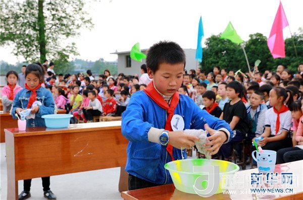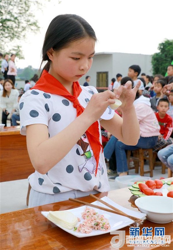 當(dāng)日,九年一貫制的四川省華鎣市慶合初級(jí)中學(xué)舉行學(xué)生生活自理能力大賽。在該校就讀的小學(xué)生和初一、初二年級(jí)學(xué)生參加了穿衣服、洗漱、疊衣服、炒菜、包餃子等項(xiàng)目的比賽。該校把提高學(xué)生生活自理能力作為一項(xiàng)重要的教學(xué)工作,旨在引導(dǎo)孩子們養(yǎng)成良好的生活習(xí)慣。新華社發(fā)(周松林 攝)