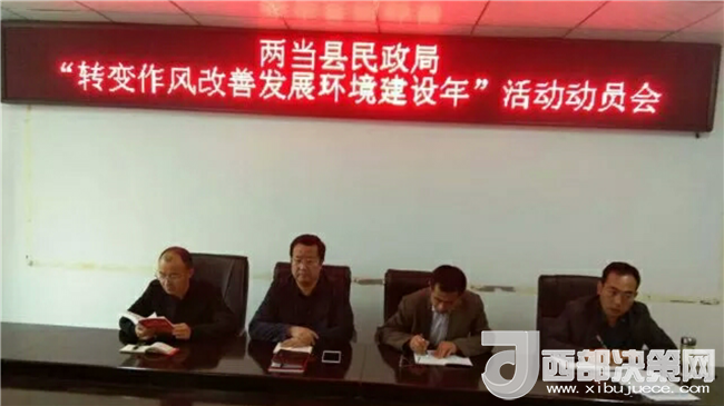 西部決策網(wǎng)——西部大開發(fā)訊 (帥華鋒 通訊員 馬存福 趙雪瓊) 5月9日,甘肅兩當(dāng)縣民政局組織召開“轉(zhuǎn)變作風(fēng)改善發(fā)展環(huán)境建設(shè)年”活動動員會議。局機(jī)關(guān)全體干部職工參加會議。