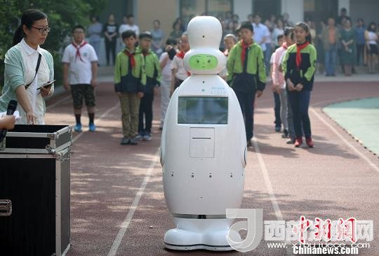 人工智能機器人“木木”擔綱科學嘉年華主持人。 泱波 攝