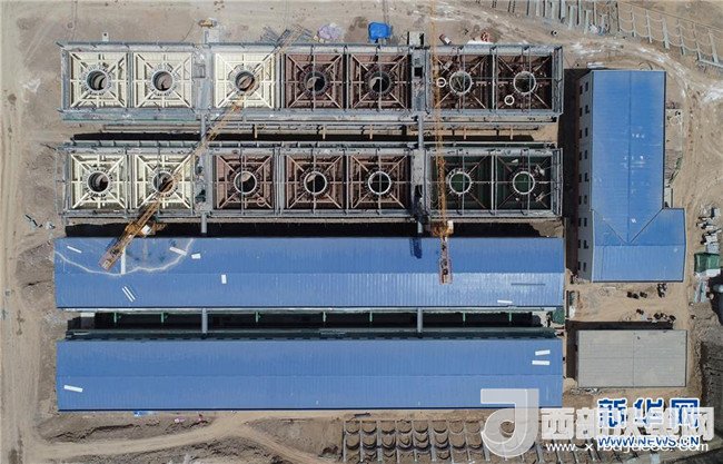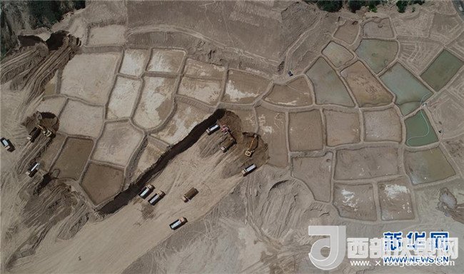 延安黃河引水工程泥沙處理站施工現(xiàn)場(5月30日無人機拍攝)。