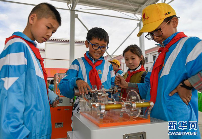 幾名學生在拉薩市流動科技館巡展活動現(xiàn)場體驗科學小實驗(5月24日攝)。 新華社記者 劉東君 攝