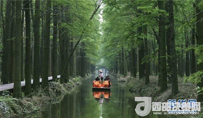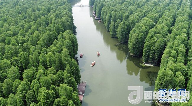夏日時節(jié),位于江蘇省興化市李中鎮(zhèn)的水上森林公園滿目蒼翠,綠意撲面。水杉、池杉等樹木構(gòu)成了一幅幅夏日畫卷,吸引不少游客前往游覽。