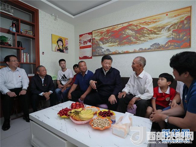 6月12日至14日,中共中央總書記、國家主席、中央軍委主席習(xí)近平在山東考察。這是14日上午,習(xí)近平來到濟(jì)南市章丘區(qū)雙山街道三澗溪村,同村民趙順利一家拉家常。新華社記者 謝環(huán)馳 攝