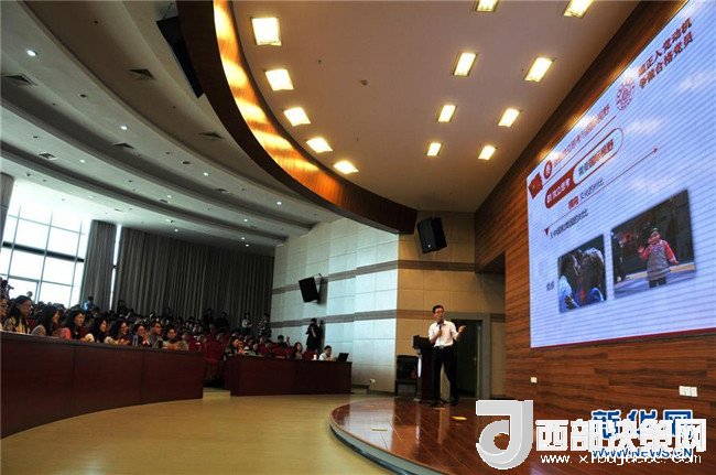 2016年5月16日,徐川在南京航空航天大學(xué)報(bào)告廳給同學(xué)們上《端正入黨動(dòng)機(jī) 爭(zhēng)做合格黨員》黨課。新華社記者 林凱 攝