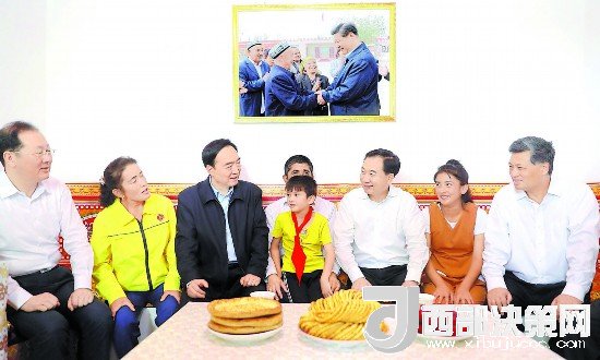 6月26日,自治區(qū)黨委書記、新疆生產(chǎn)建設兵團黨委第一書記、第一政委陳全國陪同廣東省委書記李希,廣東省委副書記、省長馬興瑞,來到疏附縣吾庫薩克鎮(zhèn)托萬克吾庫薩克村看望慰問貧困戶阿布都熱西提·麥麥提一家。崔志堅 攝