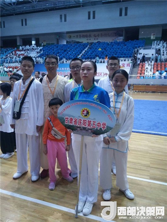 為了參加本次比賽,慶陽市第五中學(xué)武術(shù)隊積極備戰(zhàn),通過選拔,組成了一支由校長張建軍為領(lǐng)隊,申正罡老師為教練的七人代表隊,分別參加B、C組男、女太極拳及太極刀劍的比賽。