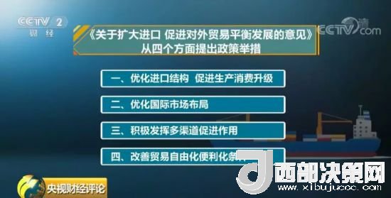 日前,國務(wù)院辦公廳轉(zhuǎn)發(fā)商務(wù)部等20個部門《關(guān)于擴大進口 促進對外貿(mào)易平衡發(fā)展的意見》?!兑庖姟窂乃膫€方面提出政策舉措:一是優(yōu)化進口結(jié)構(gòu),促進生產(chǎn)消費升級;二是優(yōu)化國際市場布局;三是積極發(fā)揮多渠道促進作用;四是改善貿(mào)易自由化便利化條件。其中,在優(yōu)化進口結(jié)構(gòu)方面,提出了四個方向,包括:支持關(guān)系民生的產(chǎn)品進口、積極發(fā)展服務(wù)貿(mào)易、增加有助于轉(zhuǎn)型發(fā)展的技術(shù)裝備進口、增加農(nóng)產(chǎn)品和資源性產(chǎn)品進口。