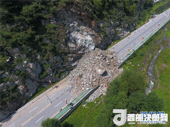 這是五臺(tái)山景區(qū)梵仙山路段的山體崩塌現(xiàn)場(chǎng)(7月21日攝)。受降雨影響,山西五臺(tái)山景區(qū)于7月19日和20日發(fā)生兩起山體崩塌地質(zhì)災(zāi)害,沒有造成人員傷亡和車輛損失。新華社發(fā)(楊晨光攝)