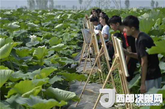 7月24日,一群學(xué)生在隆堯縣東良鎮(zhèn)澤畔村荷塘邊寫(xiě)生。