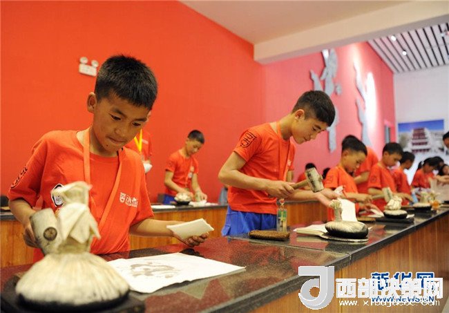 7月24日,牦牛坪小學(xué)學(xué)生在大明宮考古探索中心體驗(yàn)拓片技藝。