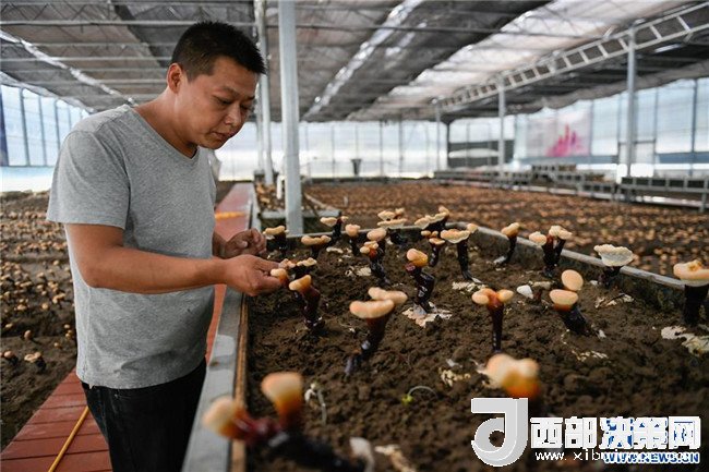 技術(shù)人員在西藏林芝市米林縣南伊村白靈芝種植基地大棚內(nèi)查看白靈芝長勢(7月27日攝)。新華社記者劉東君攝
