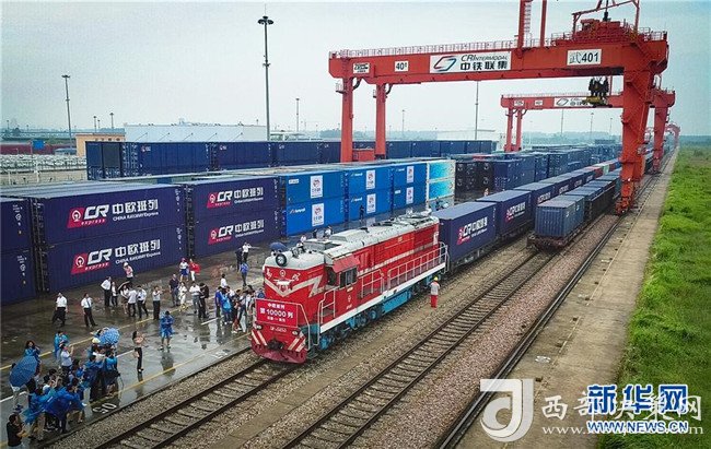 當(dāng)日,隨著X8044次中歐班列(漢堡—武漢)到達(dá)武漢吳家山鐵路集裝箱中心站,中歐班列累計開行數(shù)量達(dá)到10000列。 自2011年開行以來,中歐班列快速發(fā)展,規(guī)模數(shù)量呈現(xiàn)井噴式增長。目前,中歐班列已成為“一帶一路”建設(shè)的標(biāo)志性成果,被喻為“一帶一路”上的“鋼鐵駝隊”。 新華社記者 肖藝九 攝