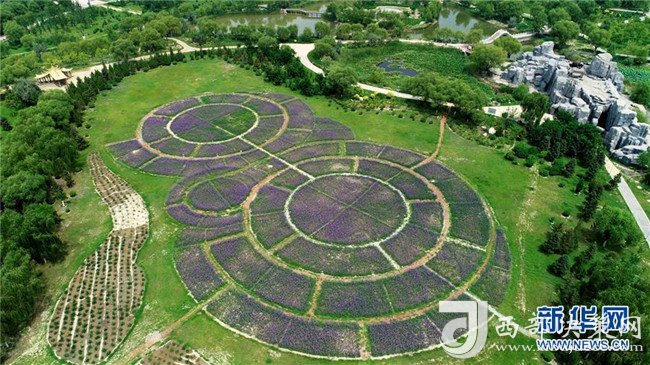在寧夏石嘴山大武口發(fā)電廠第二排灰場(chǎng)上建起的石嘴山人民公園(7月31日無(wú)人機(jī)拍攝)。
