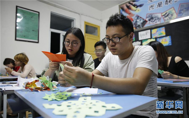 近年來,越來越多的“80后”“90后”教師加入教學隊伍。2017年,在幾名青年教師的倡議下,學校開設了“教師夜校”,教師們在教學工作之余,每周一至周四的晚上七點半至九點可以參加閱讀、書法、舞蹈等活動,豐富業(yè)余生活的同時,也提升了教師的綜合素質。新華社發(fā)(游青 攝)