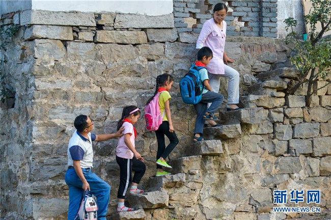 9月7日,在位于太行山東麓的河北省邯鄲市涉縣更樂鎮(zhèn)張家莊村,“80后夫妻”趙文波和秦晶晶一起護送學生回家。趙文波和秦晶晶均為師范學校畢業(yè),先后投身當地農村教育事業(yè)。2000年兩人相識,共同的教育理想讓他們走到了一起。18年來,兩人相愛相守,扎根山區(qū),在三尺講臺上共同堅守。新華社記者 王曉 攝