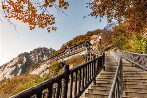 賞紅葉——華山的紅葉是噴薄的,那是一種一瀉千里,從山頂直鋪下山谷,又從山谷延綿更遠(yuǎn)的群山,像瀑布一般,而葉愈遠(yuǎn)處愈紅,紅似火焰耀眼,眼前的則紅黃交錯,讓人目不暇接。