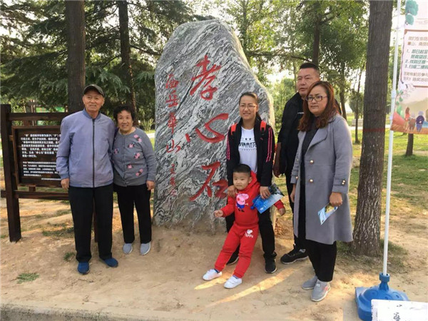 在節(jié)日的氛圍里,游客熱情高漲,爭(zhēng)先恐后地與“孝心石”合影留念,以此表達(dá)自己對(duì)父母的親切祝福。