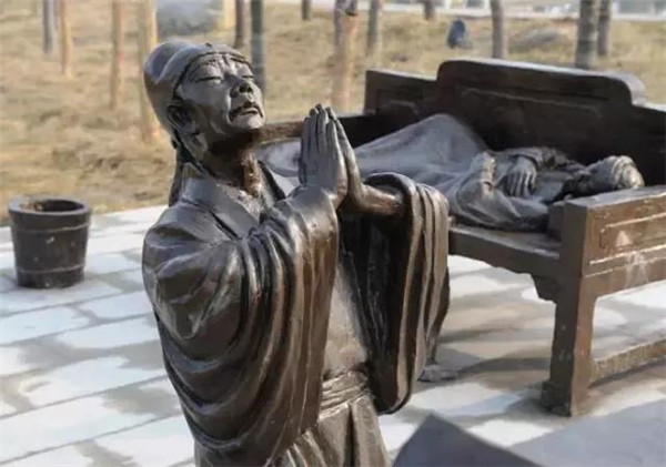 漢文帝劉恒,漢高祖第三子,為薄太后所生。高后八年(前180)即帝位。他以仁孝之名,聞?dòng)谔煜?,侍奉母親從不懈怠。母親臥病三年,他常常目不交睫,衣不解帶;母親所服的湯藥,他親口嘗過(guò)后才放心讓母親服用。他在位24年,重德治,興禮儀,注意發(fā)展農(nóng)業(yè),使西漢社會(huì)穩(wěn)定,人丁興旺,經(jīng)濟(jì)得到恢復(fù)和發(fā)展,他與漢景帝的統(tǒng)治時(shí)期被譽(yù)為“文景之治”。