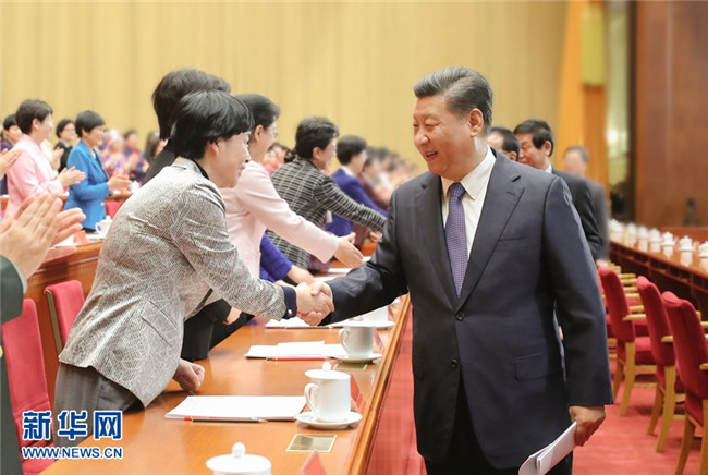 10月30日,中國婦女第十二次全國代表大會在北京人民大會堂開幕。這是中共中央總書記、國家主席、中央軍委主席習(xí)近平等同與會代表親切握手。 新華社記者 鞠鵬 攝