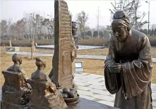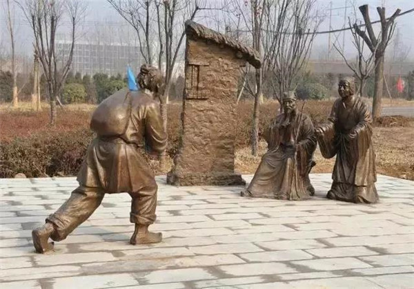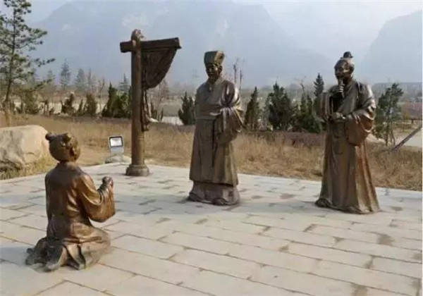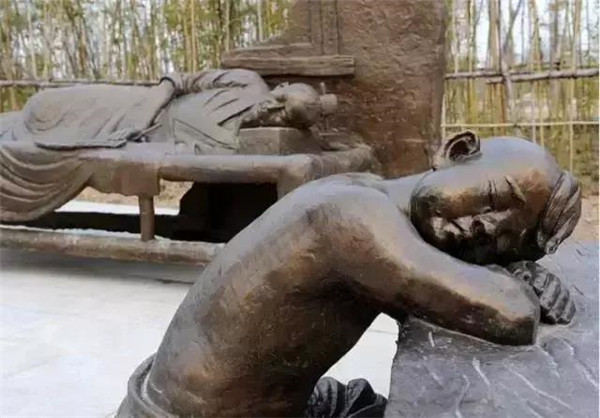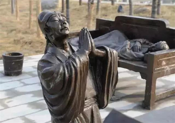 丁蘭,相傳為東漢時期河內人,幼年時父母雙亡,他經常思念父母的養(yǎng)育之恩,于是用木頭刻成雙親的雕像,事之如生,凡事均和木像商議,每日三餐敬過雙親后自己方才食用,出門前一定稟告,回家后一定面見,從不懈怠。久之,其妻對木像便不太恭敬了,竟好奇地用針刺木像的手指,而木像的手指居然有血流出。丁蘭回家見木像眼中垂淚,問知實情,遂將妻子休棄。
