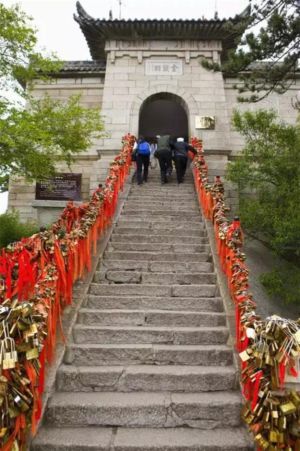金鎖關(guān)北接五云峰,南控華山主峰,東西兩側(cè)壑深千丈,關(guān)前僅有一米完的臺階石徑。環(huán)周古松蒼翠,奇石林立,常有祥云環(huán)繞,風(fēng)光非常迤麗。“但有女兒初長成,便為三秦姣姣容。”說的就是奇險天下第一山的華山除了以其奇、險、秀而聞名遐邇之外,還別有一番令人動容的金鎖關(guān)風(fēng)景:關(guān)內(nèi)、關(guān)外登山路兩側(cè)的鐵索上,情侶鎖、平安鎖,重重疊疊,紅繩彩線迎風(fēng)搖曳,筑成一道美麗的愛情風(fēng)景線,鎖住對愛情的誓言,表達(dá)堅如磐石的愛情忠貞!