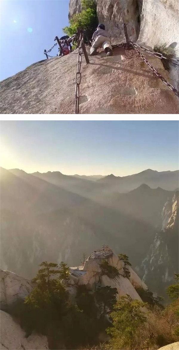接下來你將會挑戰(zhàn)——華山五大險關(guān)。這五道險關(guān)分別是千尺幢、百尺峽、老君犁溝、擦耳崖和蒼龍嶺。